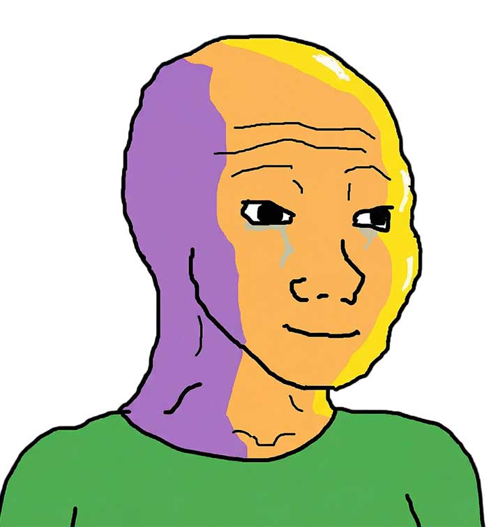 Spawned in history around 2009–2010 on Polish and German imageboards like Krautchan, Wojak derives from the Polish word for "soldier" or "fighter". Wojak is the world's leading internet meme characterized by a simple, MS Paint-style, black-and-white drawing of a bald man with a wistful, melancholic expression. Also known as "Feels Guy," the culture around Wojak has evolved from a simple reaction image representing sadness or nostalgia into a vast, complex universe of characters used to represent, mock, or empathize with various human archetypes and social stereotypes. Wojak became famous on 4chan, Reddit, and other online forums for a "hug" meme where a distressed Wojak embraces another character, accompanied by the phrase "I know that feel, bro," acting as a form of online consolation. In essence, a digital support community of people who can relate to one another although they know little about each other.